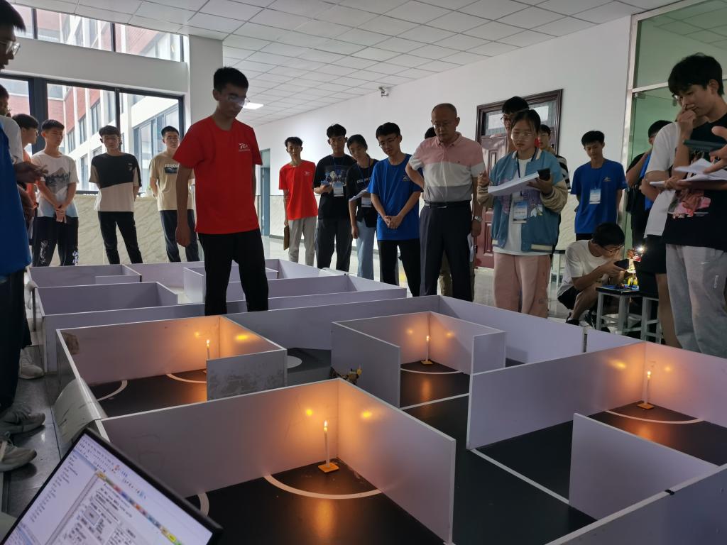 本次机器人大赛主要包括双足、六足竞步机器人,灭火、智能避障避险机器人等各项比赛,共分三个比赛场地进行比赛。参赛前,各队伍再次对机器人进行调试,并根据赛场赛道进行了试练。老师也进行了充分的指导,对比赛要求、记分原则加以说明,消除选手的紧张情绪。