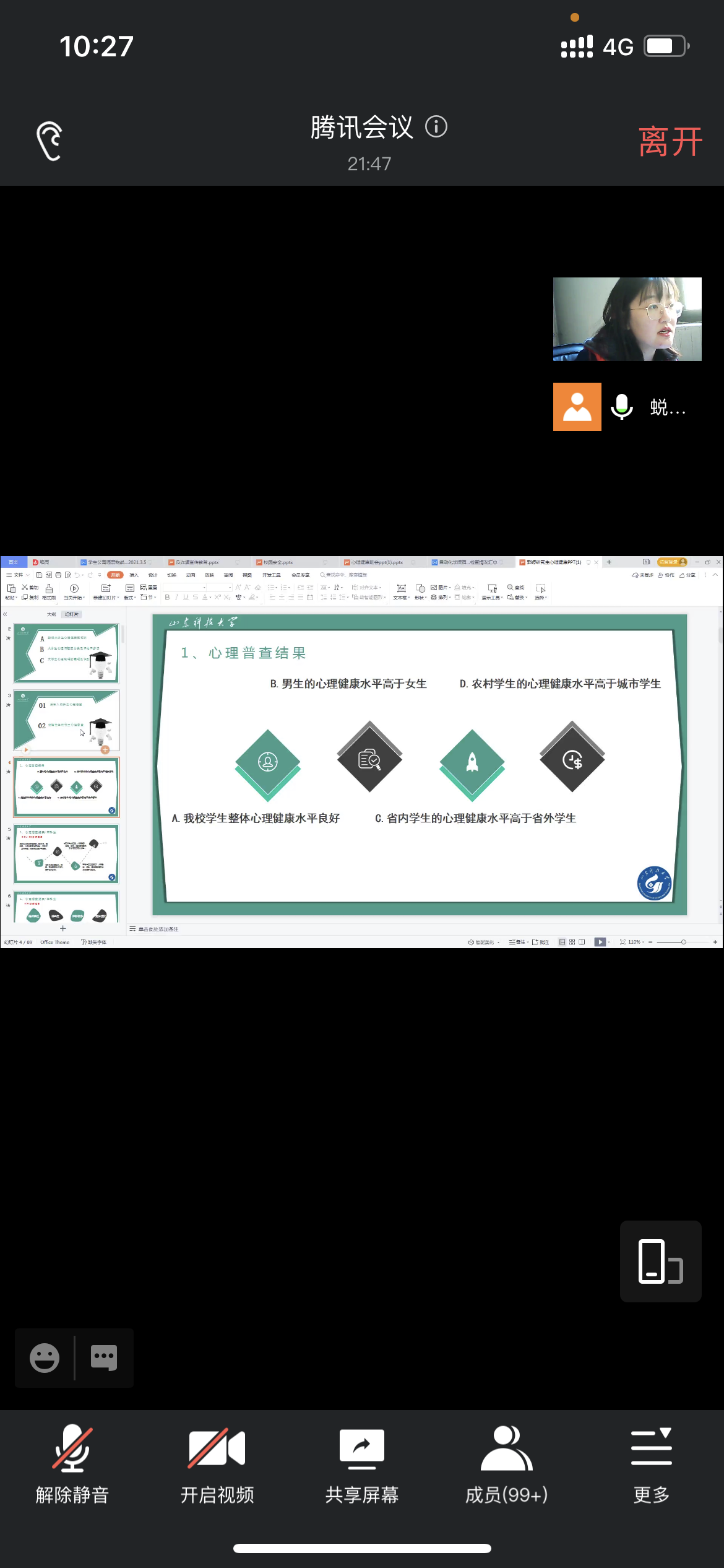 针对2018级本科生面临的升学、就业选择问题,学工办主任、2018级辅导员杨洪骞、2018级辅导员韩梅利用腾讯会议开展线上家长会,为家长们分析了近五年来学院的升学、就业数据,让家长对升学就业有更加全面深入的认识,提醒家长督促学生对标自身情况合理选择,并以实际行动做好充足准备。