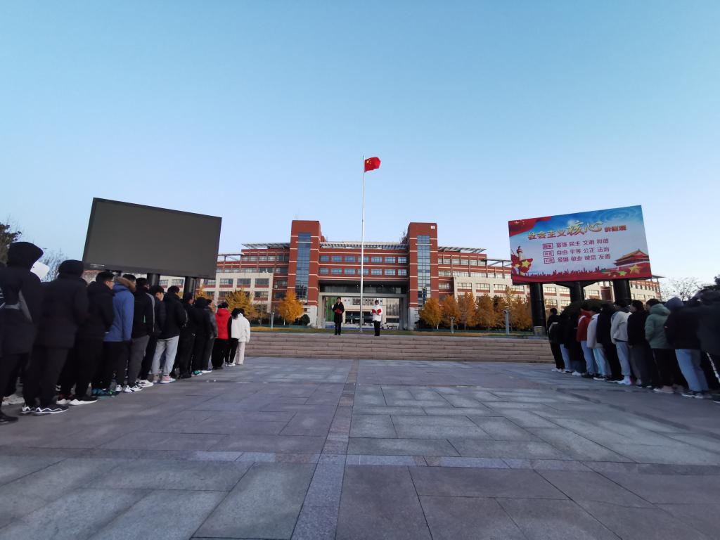 早晨六点整,天色未明,同学们便在升旗台前列队等候。6点30分,升旗仪式正式开始,十大买球官方网站国旗护卫队队员保持方块队形,昂首挺胸、步伐一致、齐头并进,当国歌奏响,五星红旗向着朝阳冉冉升起,在场所有老师、同学庄严肃立,目光都集聚集于五星红旗之上。