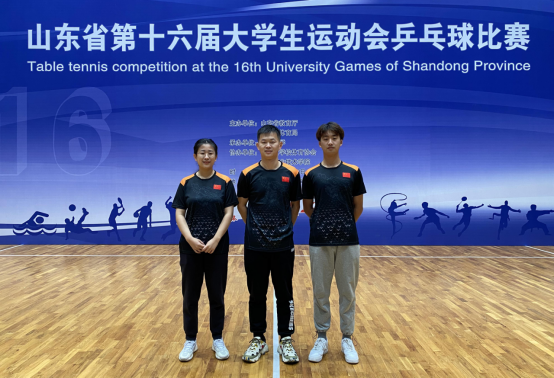 2021年11月30日至12月5日,由山东省教育厅、山东省体育局主办的山东省第十六届大学生运动会乒乓球比赛在青岛职业技术学院举行。我校由体育学院于然、张旭老师带队,派出男、女运动员共十人参加本次比赛。自动化学院2019级研究生郭海港、2021级研究生李云慧、2021级本科生赵彦杰三名同学参赛,其中,郭海港、赵彦杰获得男子团体第五名;李云慧获得女子双打第八名的佳绩。
