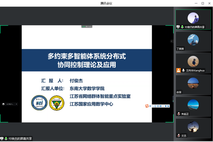 买球赛十大平台承办的人工智能学部第14期青年学者沙龙于2022年11月11日上午10点举行,本次沙龙采用线上方式进行,由王向华老师主持,邀请到东南大学付俊杰教授做了题为“多约束多智能体系统分布式协同控制理论及应用”的精彩报告。本次报告,付教授回顾现有的处理多智能体系统输入及状态受限协同控制的主要结果,并介绍近期相关研究成果,包括输入饱和多智能体协同控制、输入及速度约束多智能体分布式编队控制以及基于控制障碍函数方法的安全编队控制等。最后参会师生就推荐系统的相关问题向付教授请教,付教授一一进行细致解答,大家围绕相关问题展开了广泛深入的讨论。本次学术沙龙活动,让参会师生们获益匪浅。