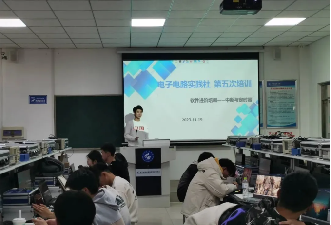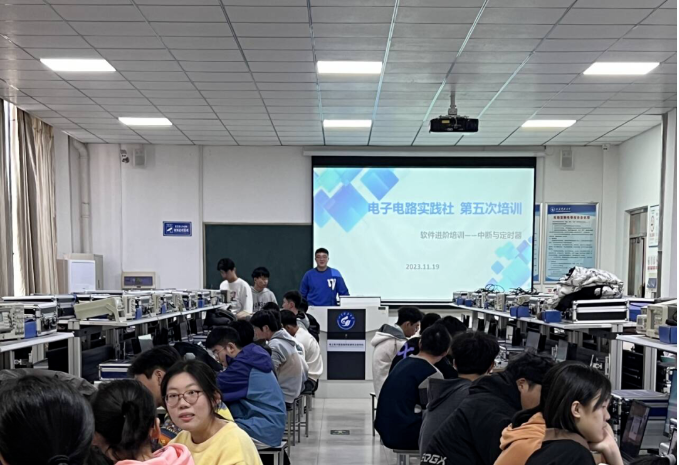 为了做好社团的培训工作,为社团注入新活力,助力社团的下一步发展,2023年11月19日下午2:30-6:00,电子电路实践社进行第五次培训,此次培训也为软件进阶培训第一讲,由周厚银、孙江凡、董峻铭、李晓枫、司云天培训。孙江凡主讲。