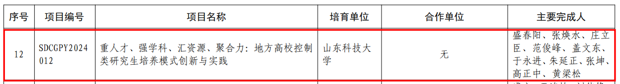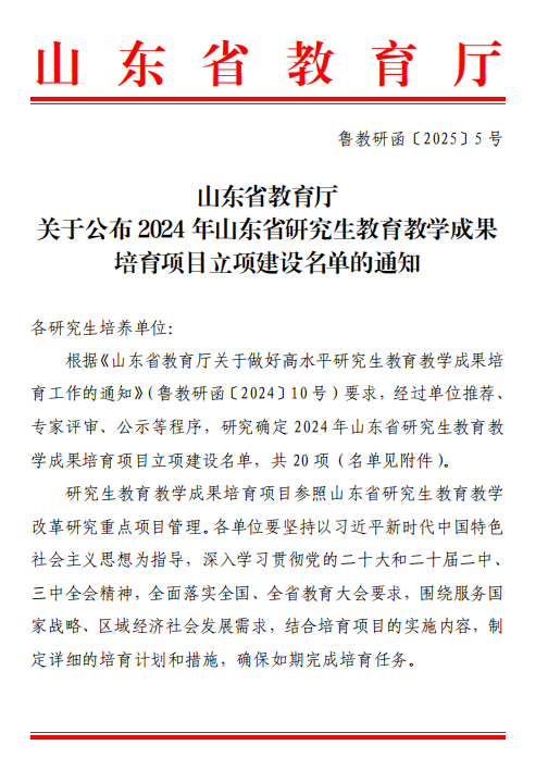 山东省研究生教育教学成果培育项目