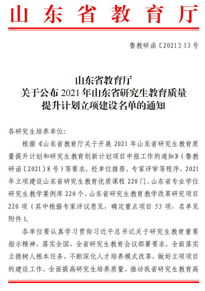 山东省研究生教育教学改革项目:团队建设