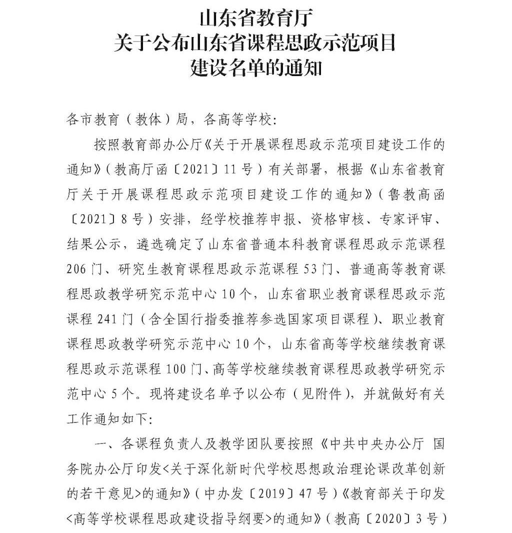 山东省课程思政教学示范中心