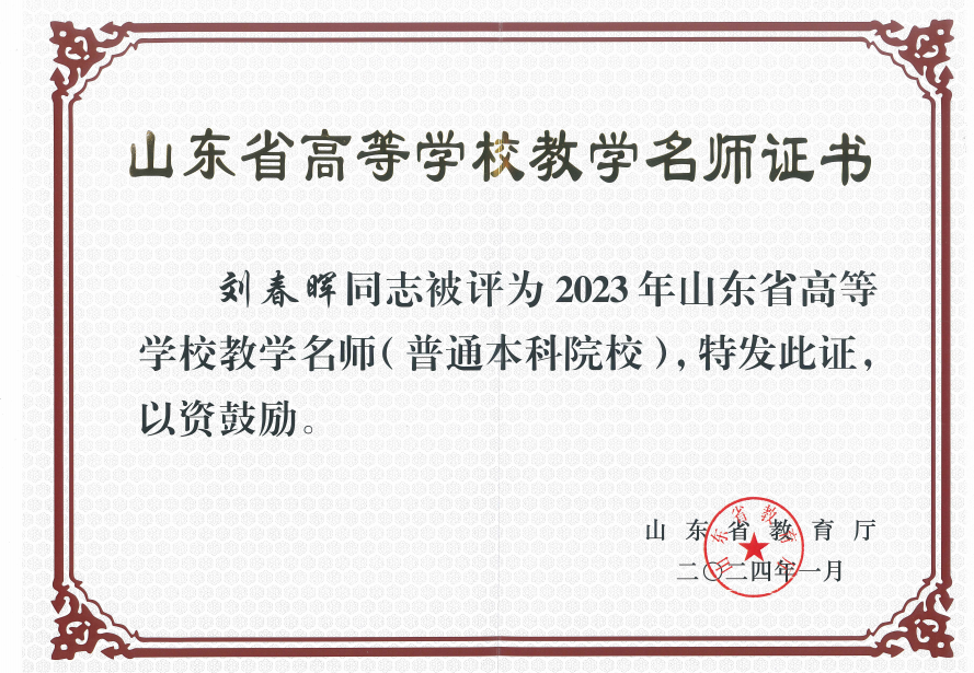 山东省教学名师刘春晖