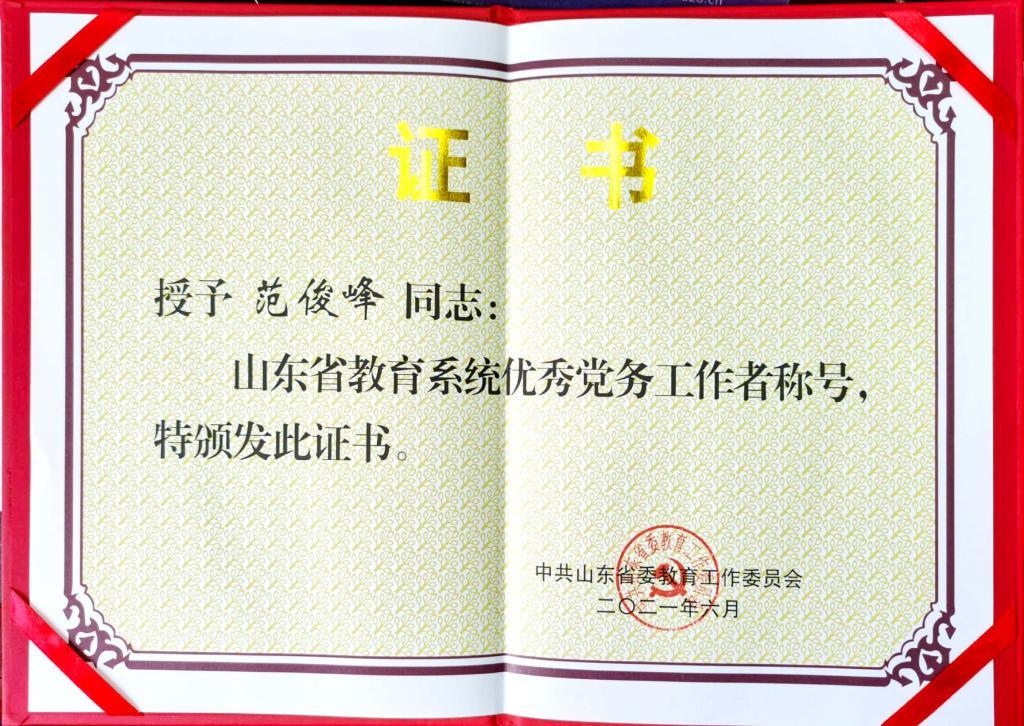 山东省教育系统优秀党务工作者