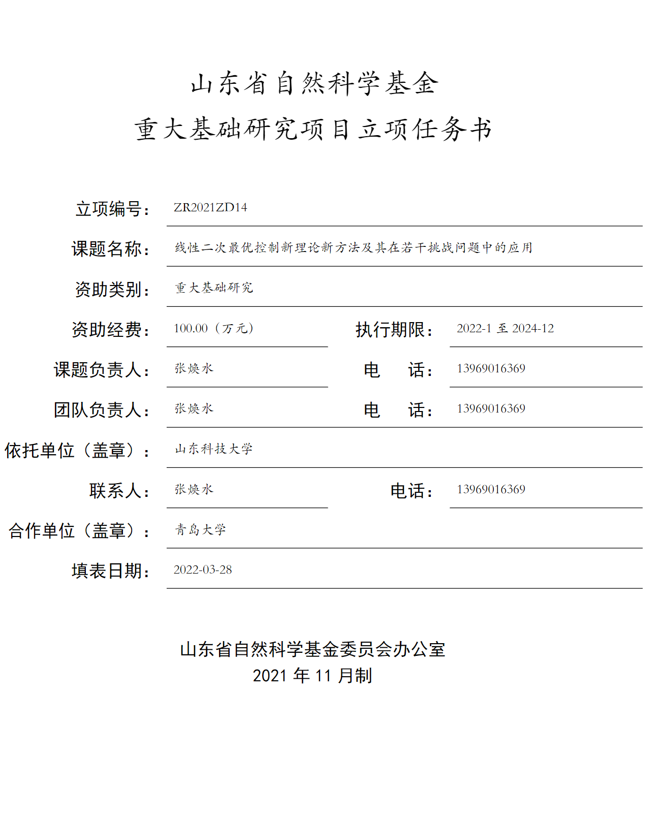 山东省重大基础研究项目2